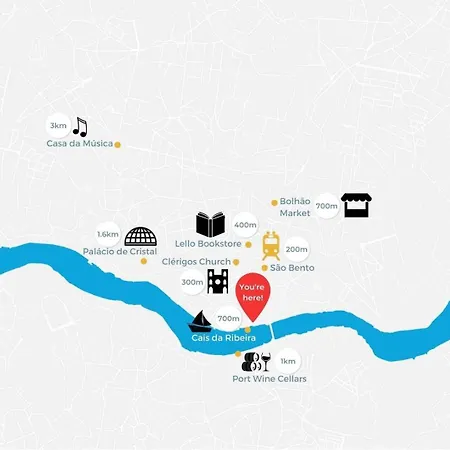 Inspiring City Center 1Br Apartment також розташовані на відстані 7-хвилинної прогулянки від площі Рібейра. Апартаменти розташовані на відстані 10 хвилин пішої прогулянки від залізничного вокзалу São Bento та біля автовокзалу Mouzinho da Silveira.
